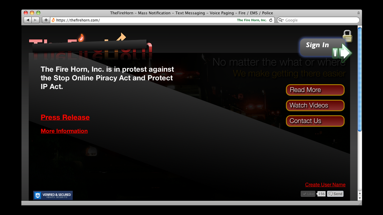 18 Jan 2012 - The Fire Horn, Inc. publicly announces protest of SOPA / PIPA